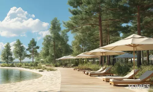 | Элементы благоустройства и инфраструктура внутри поселка | Прогулочная зона, Благоустроенный пляж , Спортивная площадка, Детская площадка, Гостевая парковка, |