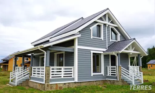 - Кровля: Двухскатная из метало-черепицы с установкой снегозадержателей и водосточной системы;