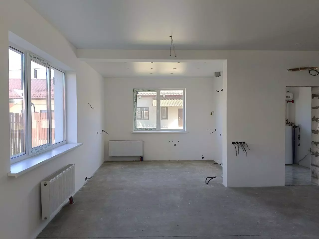 Отделка White box: В доме установлены межкомнатные стены; выполнена разводка всех коммуникаций; натяжной потолок; оборудована котельная под ключ.