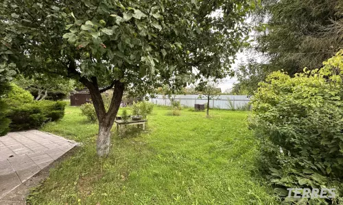 Земельный участок: 6 соток, ровный, правильной формы, перед домом предусмотрено место для парковки 2-х авто. Забор - металлический штакетник высотой 2м.