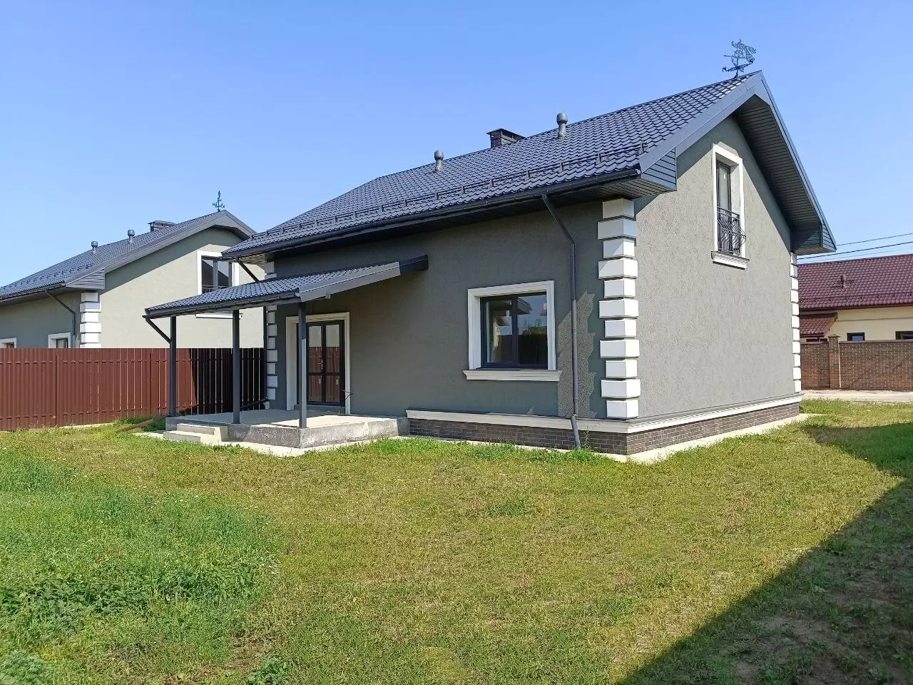 - Фасад: Штукатурка, покраска, цоколь утеплен и облицован термопанелями, выполнена отмостка