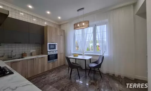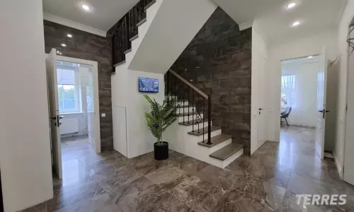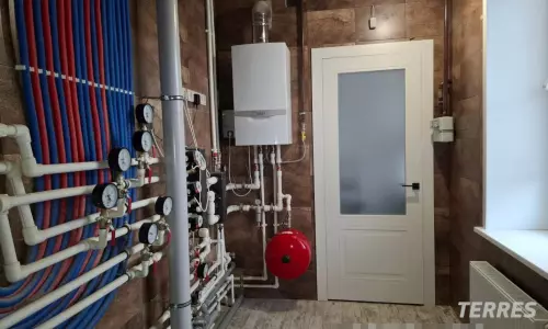 Коммуникации: центральное газоснабжение, электроснабжение, центральное водоснабжение, скважина, канализация септик, отопление-котел газовый вайлант, финские радиаторы. Теплый пол - шитый полипропилен "Рехау" на 1-м этаже, лоджии и санузлах 2-го этажа. 170 эл. розеток. Лестница дуб+ковка, очень комфортный подъём. В одной из спален свой с/у. Кондиционеры. 2 гардеробные на 1 эт.