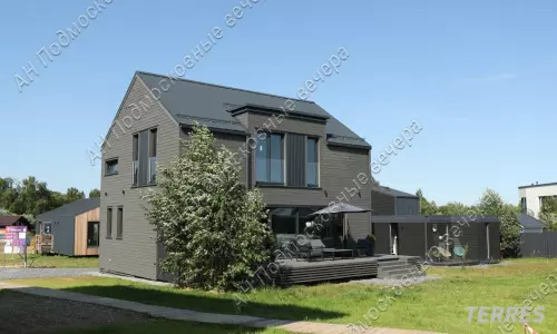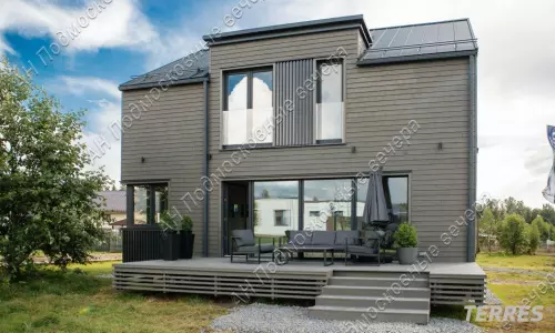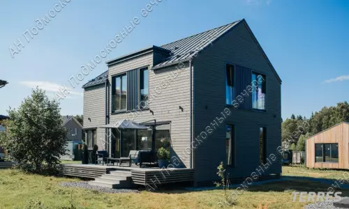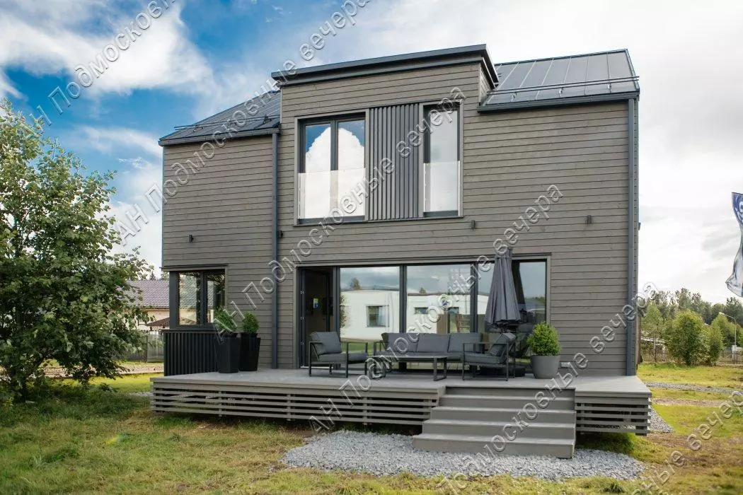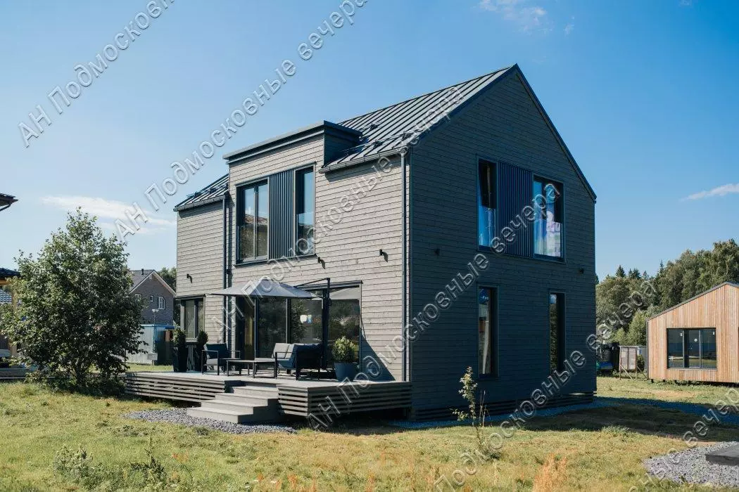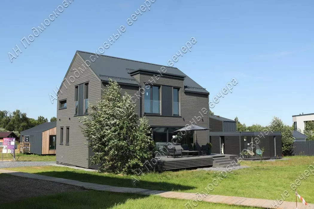 Дом 175 кв. м, 2 этажа / 2 уровня, каркасный, Дом выполнен из домокомплекта, произведенного на норвежском заводе из иностранных материалов, срок службы дома не менее 100 лет. Толщина утепления кровли и нулевого перекрытия 300 мм, стены 250 мм каменной ваыт. На заводе также окрашен и смонтированы фасад из скандинавской доски с поднятым ворсом (для длительного срока окраса), смонтированы окна и отливы, что исключает вероятность нарушения технологии монтажа и герметизации теплого контура на стройплощадке. Все материалы использованы максимального качества. Окна выполнены из профиля Veka Softline с немецкой противовзломной фурнитурой с усиленными скрытыми петлями в комплектации Премиум, стеклопакеты мультифункциональные. В гостиной использовано панорамное остекление с подогревом. Для силового каркаса применяется высокотехнологичный материал LVL-брус, по многим параметрам превосходящий привычные бетонные перекрытия. Фундамент из забивных железобетонных свай длиной 4 м, перекрытие выполнено на заводе из LVL-бруса толщ. 300 мм с защитой от грызунов, со стяжкой на 1 и на 2 этажах. Входная дверь финская энергоэф. с терморазрывом. Ограждение французских балконов из стекла. По всем перекрытиям (1 и 2 эт) выполнена полусухая стяжка с водяным теплым полом. Терраса и крыльцо выполнены из импрегнированной древесины на свайном фунд., перекрытия балки, окна пвх, кровля кликфальц; внутри под отделку; отопление - система "тёплый пол". Планировка: 1-й этаж - прихожая, гостинная с обеденной и кухонной зоной, спальня (кабинет), санузел, котельная, гардеробная, терраса; 2-й этаж - холл, две спальни и одна мастер-спальня с санузлом, санузел, гардеробная. Другие строения: гостевой дом 30 кв. м, 2 этажа (модульный, в стоимость не входит. Может быть демонтирован). Коммуникации - электричество 10 кВт, три фазы; газ по границе участка; центральный водопровод по границе участка; центральная канализация по границе участка. Подъездная дорога: плиты. Безопасность - охраняемый коттеджный поселок. Участок 10 соток / дачное строительство / коттеджный поселок. На участке газон. Рядом инфраструктура: супермаркеты, магазины. В 5 километрах обустроенный пляж Истринского водохранилища, Конный клуб. Соседи построились. Общественный транспорт - автобус. Административная принадлежность: Московская область, городской округ Солнечногорск (Солнечногорский район). Возможна льготная и IT- ипотека. Этот коттедж можно купить в ипотеку. Оперативный показ по предварительной договоренности. Быстрый выход на сделку. С нашей стороны — гарантия юридической чистоты объекта, прозрачности сделки, наличия всех документов. Юридическое сопровождение. Безопасность расчетов. Бесплатная консультация у менеджеров. Звоните! Документы готовы к продаже